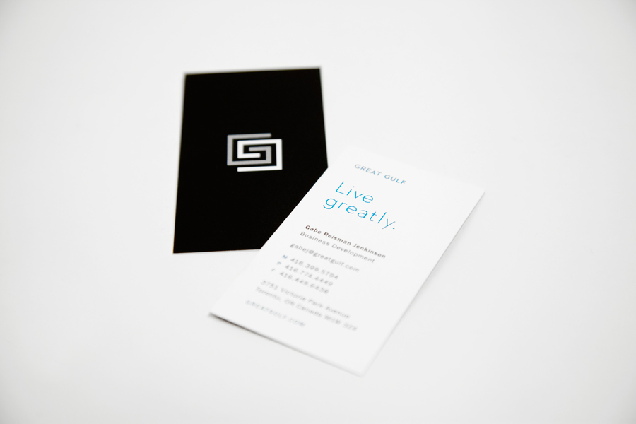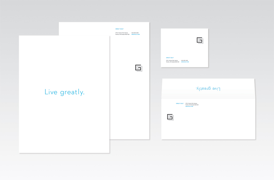 We launched the new Geat Gulf internally and externally with a critical mass of branded assets including business cards, stationery, and signage. And we built a redesigned responsive website as the centrepiece of the new brand, featuring curated photography, a dynamic animation, and "Live greatly" stories about Great Gulf’s capabilities.